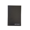 Black ECO notebook with saddle-stitched binding, 13 pt soft cover and 48 ivory lined pages. Notebook pages and covers are colored with organic, soy based inks and are made in Canada with 100% recycled materials.